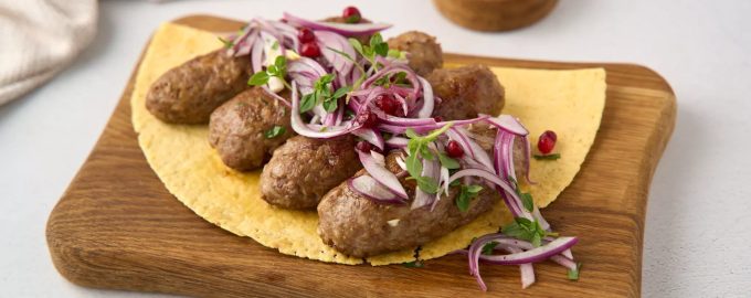 Люля-кебаб, жареный на сковороде, представляет собой аппетитное блюдо с насыщенным вкусом мяса и ароматными специями.