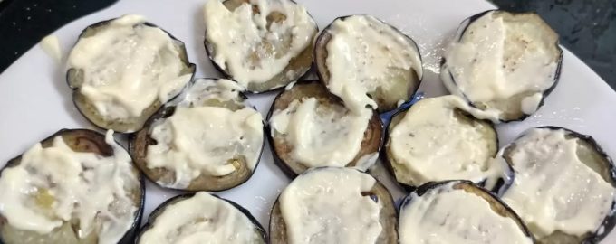 Жареные баклажаны, приправленные чесноком и майонезом, станут украшением любого стола.