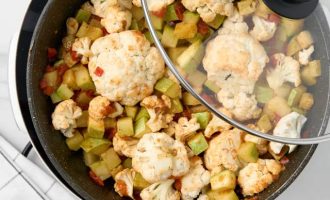 • Прикройте сковороду крышкой и убавьте огонь. Пусть блюдо тушится в течение 15–20 минут.