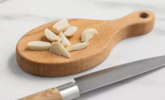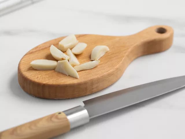 • Нарежьте зубчики чеснока на небольшие кусочки.