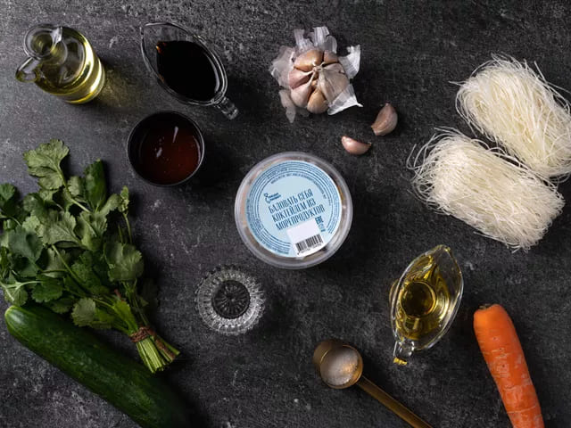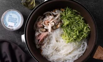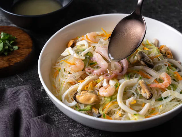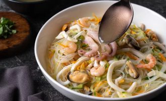 Фунчоза и маринованный морской коктейль идеально подходят для быстрого и сытного ужина.