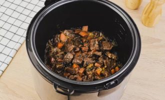 Закройте крышку мультиварки, выберите программу «Тушение» и установите время на 1 час. После приготовления добавьте соль и перец для улучшения вкуса тушеной говядины.