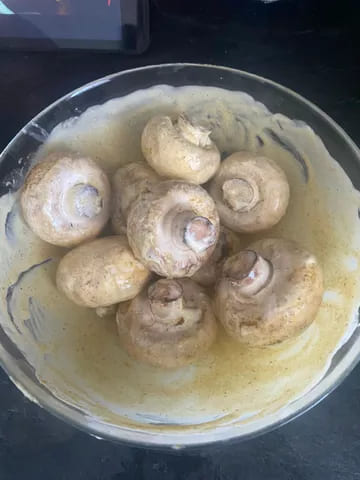 Перед приготовлением грибов с карри их нужно тщательно промыть и обсушить. Выложить ингредиенты в миску или другую ёмкость. Добавить майонез, соль и карри, перемешать и оставить на 30 минут.