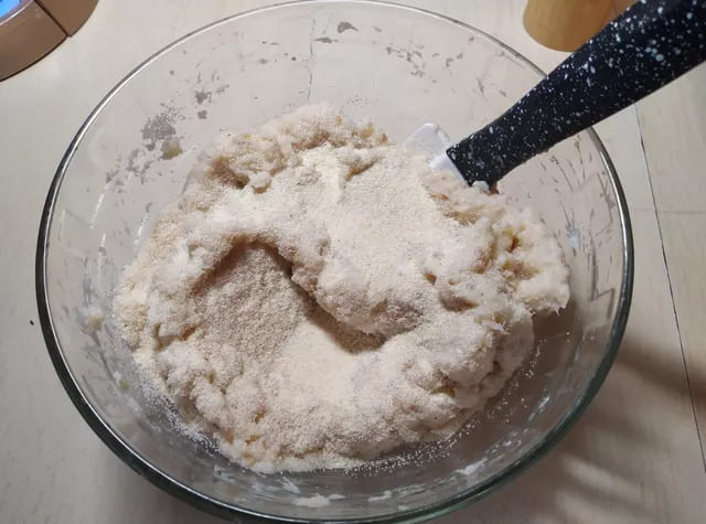 Возьмите слегка подсушенный белый хлеб и залейте его молоком до тех пор, пока он не станет мягким.