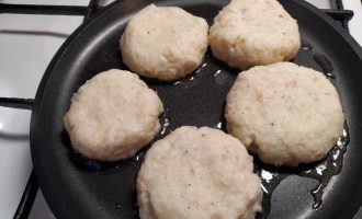 Приготовьте котлеты и обжарьте их на сковороде с растительным маслом. Готовьте с обеих сторон до золотистой корочки.