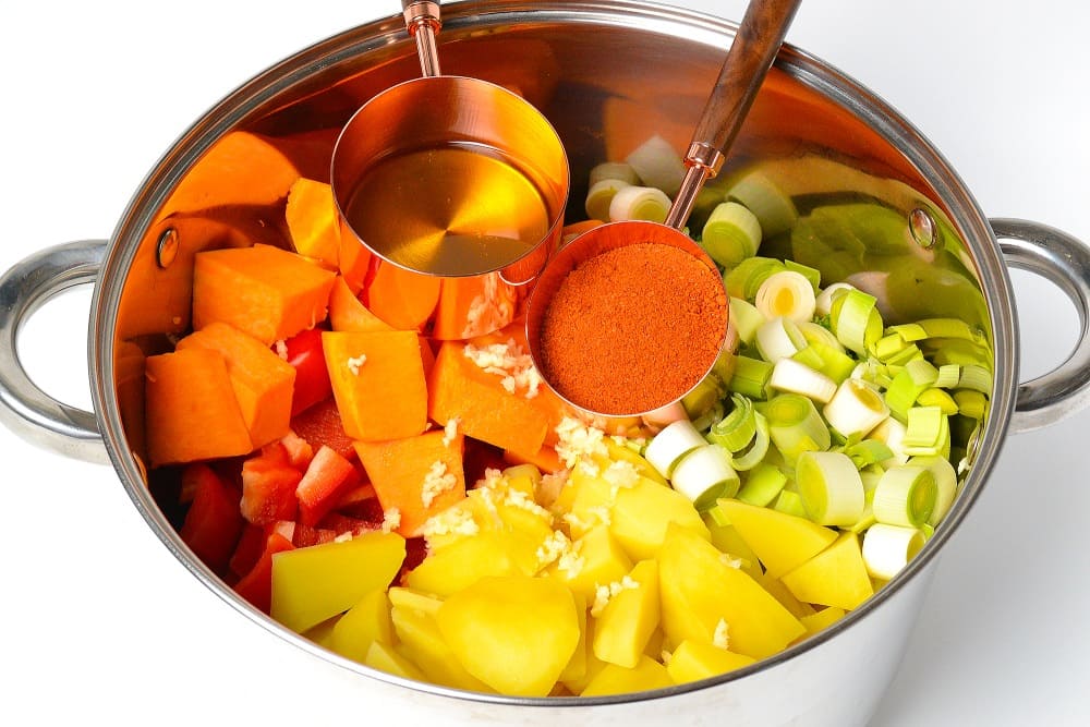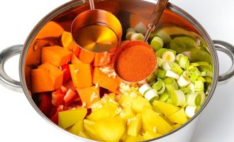 Добавить сладкую паприку и оливковое масло.