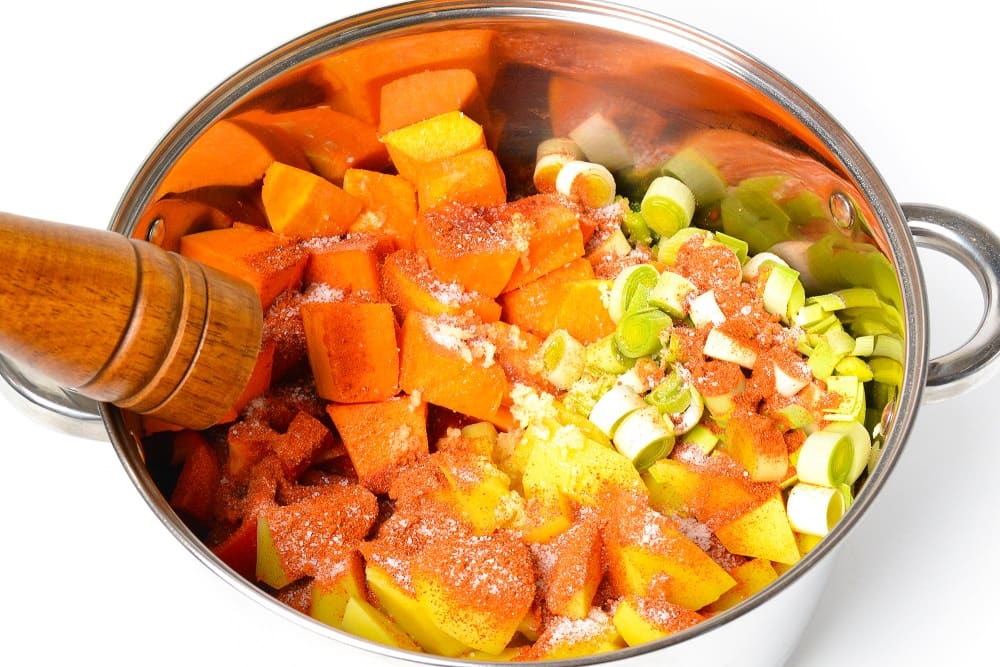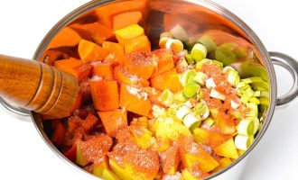 Нарезать тыкву большими кусками.