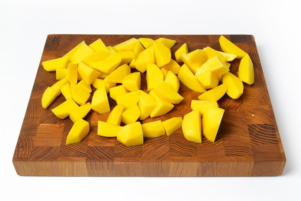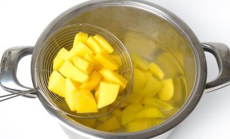 Поместите картофель в кипящую воду и готовьте 5 минут после того, как вода закипит. Достаньте его шумовкой.