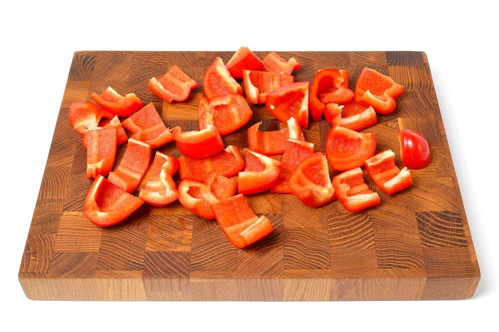 Разрежьте перец пополам, а затем каждую половинку на 6-8 долек.