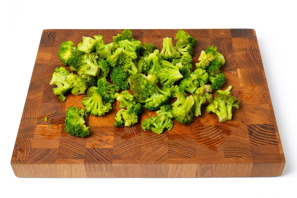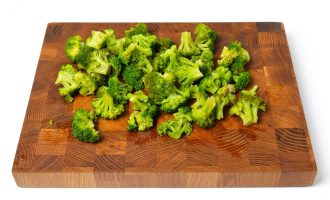 Брокколи следует нарезать крупными соцветиями, которые по размеру будут соответствовать тыкве. Кроме того, необходимо убрать лишнюю часть кочерыжки-ножки.