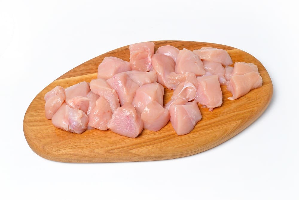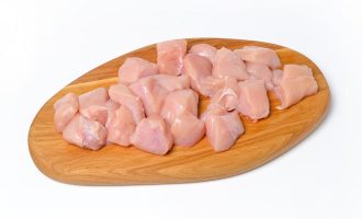 Куриное филе необходимо нарезать на большие куски.
