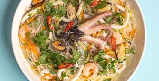 Фунчоза и маринованный морской коктейль идеально подходят для быстрого и сытного ужина.