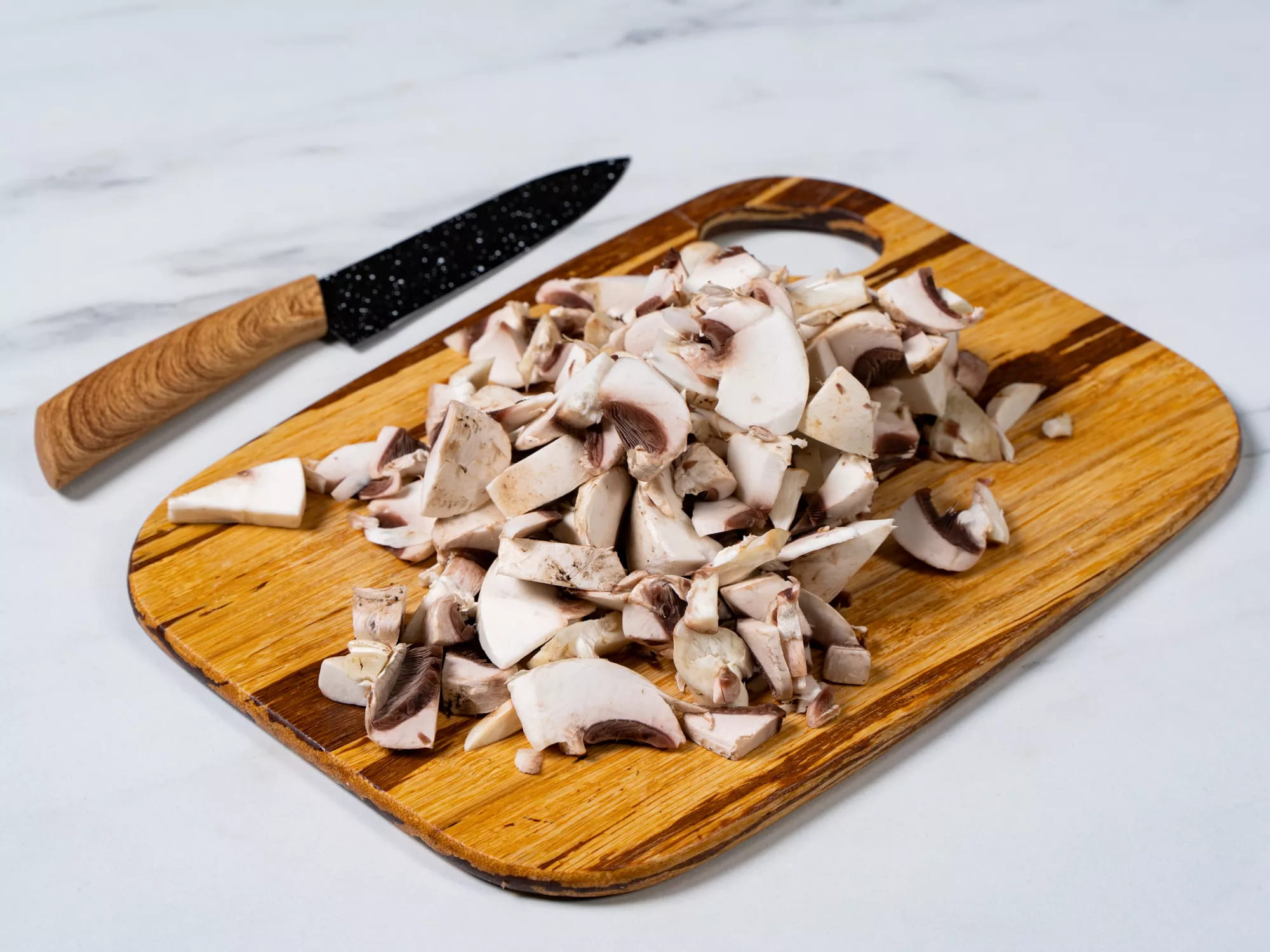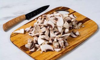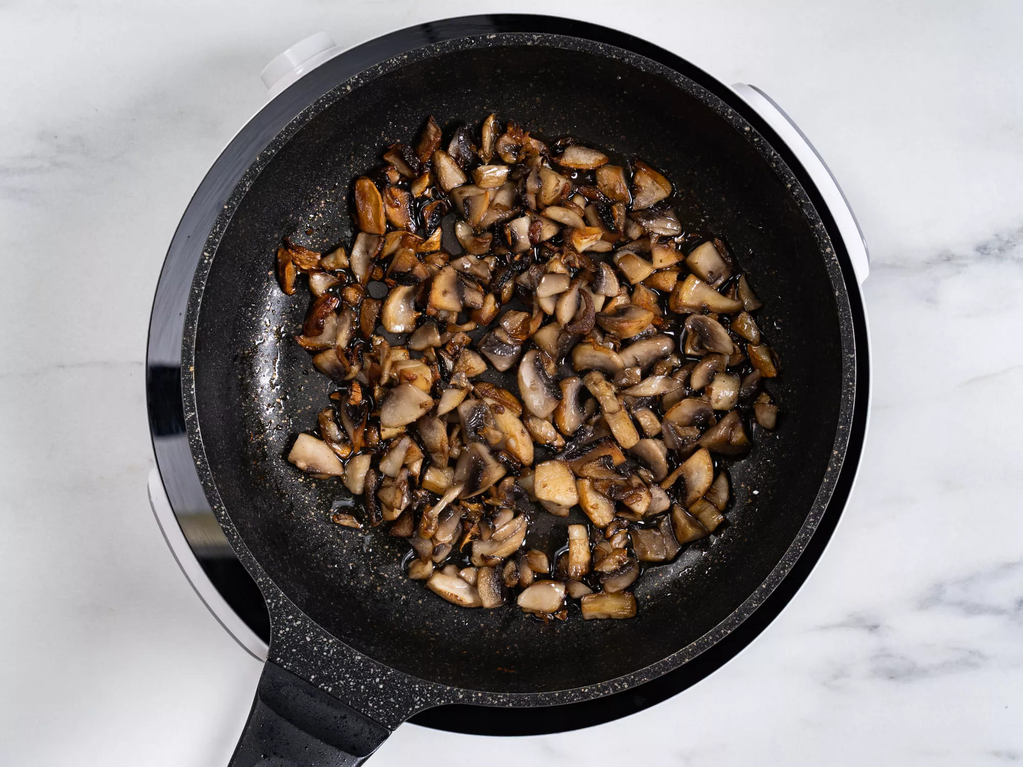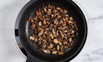 Нагрейте на сковороде немного оставшегося масла. Положите туда грибы и жарьте их, пока не испарится вся жидкость.