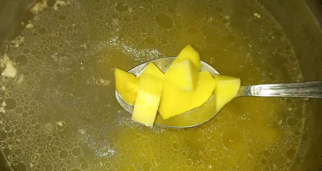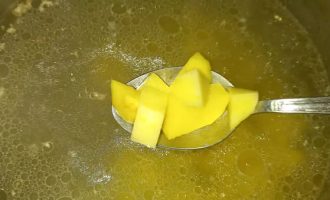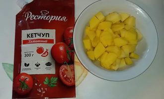 Очистите картофель и нарежьте его кубиками.