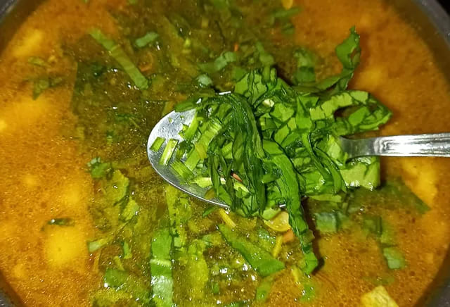 Тщательно промойте щавель и мелко нарежьте его. Добавьте щавель и универсальную приправу в бульон. Доведите суп до кипения и оставьте на огне еще на несколько минут.