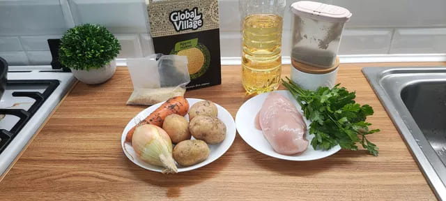 Для приготовления супа «Крестьянский» нужно подготовить все продукты. Овощи надо помыть и почистить.